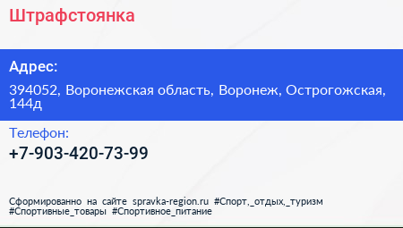 Штрафстоянка по адресу 394052, Воронежская область, Воронеж, Острогожская, 144д в дальнейшем Организация, размещена в следующих категориях: