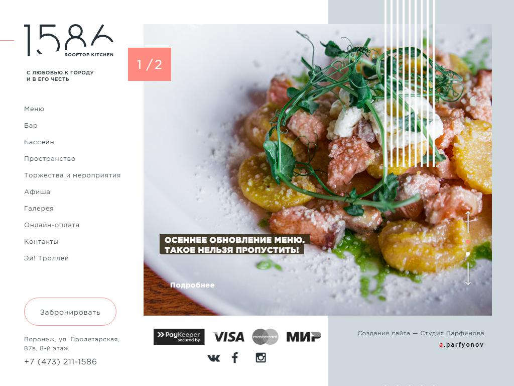 15/86, ресторан авторской кухни по адресу 394036, Воронежская область, Воронеж, Пролетарская, 87в в дальнейшем Организация, размещена в следующих категориях: