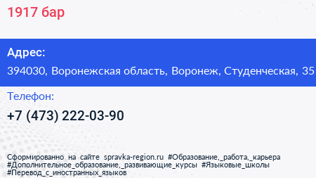 1917, бар по адресу 394030, Воронежская область, Воронеж, Студенческая, 35 в дальнейшем Организация, размещена в следующих категориях: