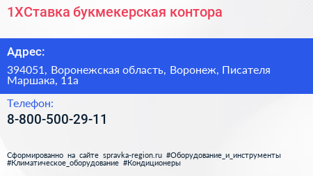 1XСтавка, букмекерская контора по адресу 394051, Воронежская область, Воронеж, Писателя Маршака, 11а в дальнейшем Организация, размещена в следующих категориях:
