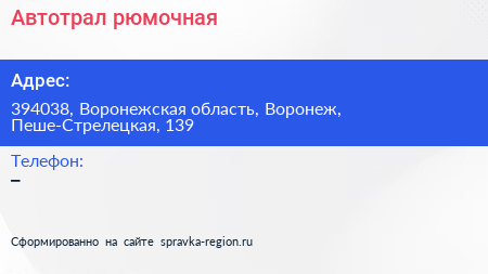 Автотрал, рюмочная по адресу 394038, Воронежская область, Воронеж, Пеше-Стрелецкая, 139 в дальнейшем Организация, размещена в следующих категориях: