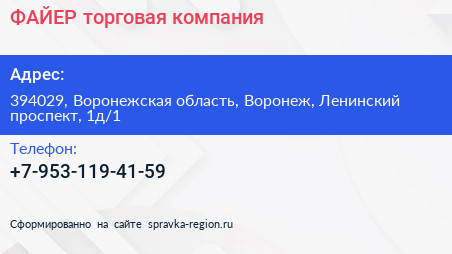 ФАЙЕР, торговая компания по адресу 394029, Воронежская область, Воронеж, Ленинский проспект, 1д/1 в дальнейшем Организация, размещена в следующих категориях: