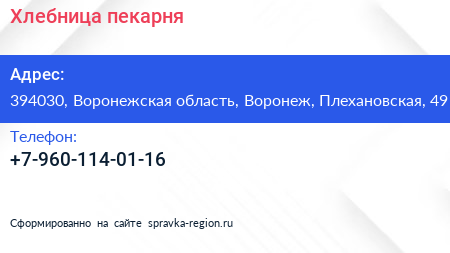 Хлебница, пекарня по адресу 394030, Воронежская область, Воронеж, Плехановская, 49 в дальнейшем Организация, размещена в следующих категориях: