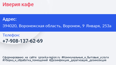 Иверия, кафе по адресу 394020, Воронежская область, Воронеж, 9 Января, 253а в дальнейшем Организация, размещена в следующих категориях: