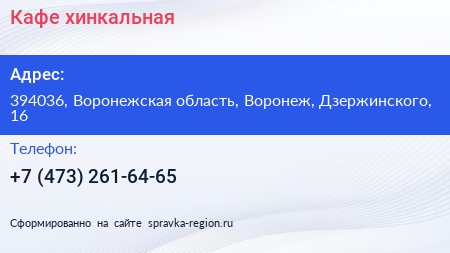 Кафе-хинкальная по адресу 394036, Воронежская область, Воронеж, Дзержинского, 16 в дальнейшем Организация, размещена в следующих категориях: