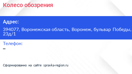 Адрес: Воронежская область, Воронеж, бульвар Победы, 23Б