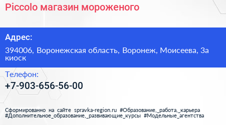 Piccolo, магазин мороженого по адресу 394006, Воронежская область, Воронеж, Моисеева, 3а киоск в дальнейшем Организация, размещена в следующих категориях:
