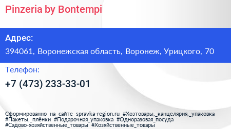 Pinzeria by Bontempi по адресу 394061, Воронежская область, Воронеж, Урицкого, 70 в дальнейшем Организация, размещена в следующих категориях: