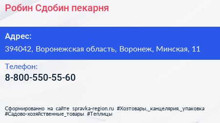 Робин Сдобин, пекарня по адресу 394042, Воронежская область, Воронеж, Минская, 11 в дальнейшем Организация, размещена в следующих категориях: