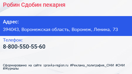 Робин Сдобин, пекарня по адресу 394043, Воронежская область, Воронеж, Ленина, 73 в дальнейшем Организация, размещена в следующих категориях: