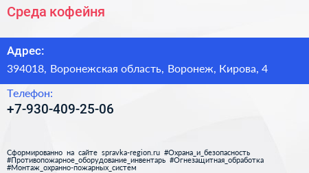 Среда, кофейня по адресу 394018, Воронежская область, Воронеж, Кирова, 4 в дальнейшем Организация, размещена в следующих категориях:
