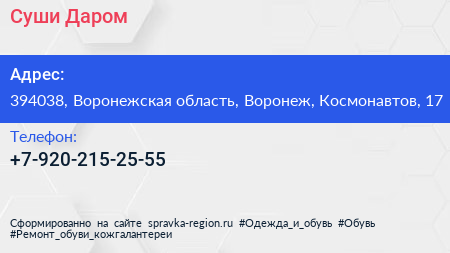 Суши-Даром по адресу 394038, Воронежская область, Воронеж, Космонавтов, 17 в дальнейшем Организация, размещена в следующих категориях: