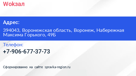 Wokзал по адресу 394043, Воронежская область, Воронеж, Набережная Максима Горького, 49Б в дальнейшем Организация, размещена в следующих категориях: