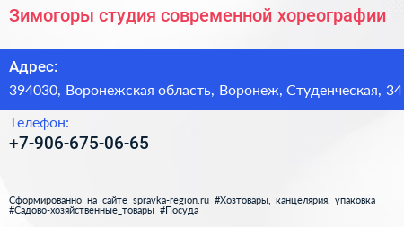 Зимогоры, студия современной хореографии по адресу 394030, Воронежская область, Воронеж, Студенческая, 34 в дальнейшем Организация, размещена в следующих категориях: