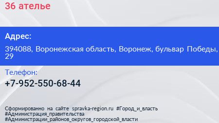 36, ателье по адресу 394088, Воронежская область, Воронеж, бульвар Победы, 29 в дальнейшем Организация, размещена в следующих категориях:
