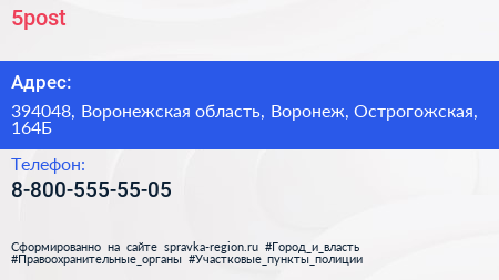 5post по адресу 394048, Воронежская область, Воронеж, Острогожская, 164Б в дальнейшем Организация, размещена в следующих категориях: