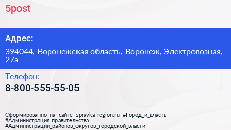5post по адресу 394044, Воронежская область, Воронеж, Электровозная, 27а в дальнейшем Организация, размещена в следующих категориях: