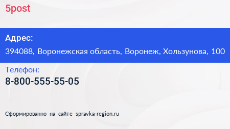 5post по адресу 394088, Воронежская область, Воронеж, Хользунова, 100 в дальнейшем Организация, размещена в следующих категориях: