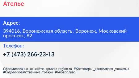 Ателье по адресу 394016, Воронежская область, Воронеж, Московский проспект, 82 в дальнейшем Организация, размещена в следующих категориях: