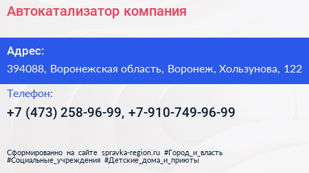 Автокатализатор, компания по адресу 394088, Воронежская область, Воронеж, Хользунова, 122 в дальнейшем Организация, размещена в следующих категориях: