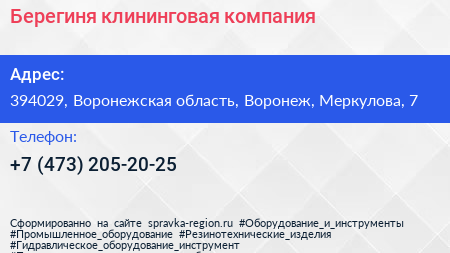 Берегиня, клининговая компания по адресу 394029, Воронежская область, Воронеж, Меркулова, 7 в дальнейшем Организация, размещена в следующих категориях:
