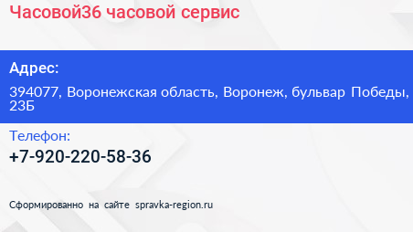 Часовой36, часовой сервис по адресу 394077, Воронежская область, Воронеж, бульвар Победы, 23Б в дальнейшем Организация, размещена в следующих категориях: