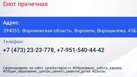Енот, прачечная по адресу 394055, Воронежская область, Воронеж, Ворошилова, 45Б в дальнейшем Организация, размещена в следующих категориях: