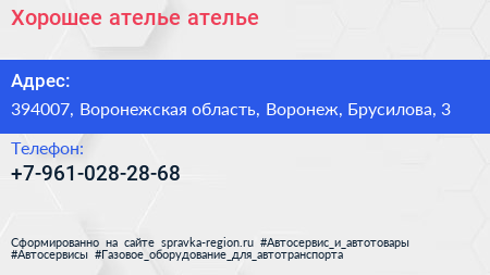 Хорошее ателье, ателье по адресу 394007, Воронежская область, Воронеж, Брусилова, 3 в дальнейшем Организация, размещена в следующих категориях: