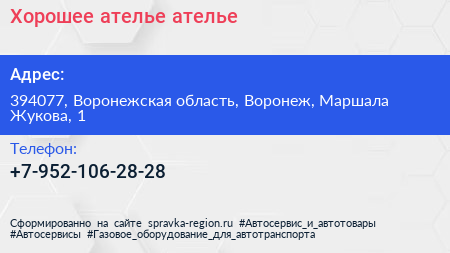 Хорошее ателье, ателье по адресу 394077, Воронежская область, Воронеж, Маршала Жукова, 1 в дальнейшем Организация, размещена в следующих категориях: