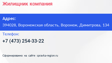 Жилищник, компания по адресу 394028, Воронежская область, Воронеж, Димитрова, 134 в дальнейшем Организация, размещена в следующих категориях: