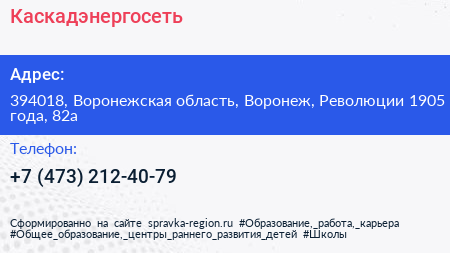 Каскадэнергосеть по адресу 394018, Воронежская область, Воронеж, Революции 1905 года, 82а в дальнейшем Организация, размещена в следующих категориях: