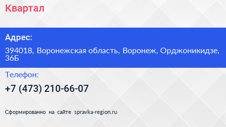 Квартал по адресу 394018, Воронежская область, Воронеж, Орджоникидзе, 36Б в дальнейшем Организация, размещена в следующих категориях: