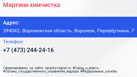 Мартини, химчистка по адресу 394042, Воронежская область, Воронеж, Перевёрткина, 7 в дальнейшем Организация, размещена в следующих категориях: