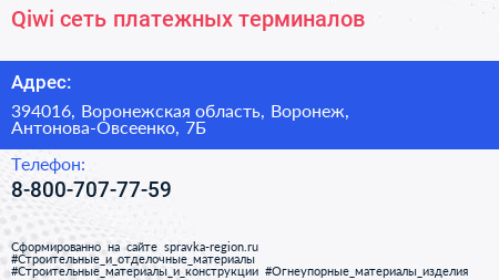 Qiwi, сеть платежных терминалов по адресу 394016, Воронежская область, Воронеж, Антонова-Овсеенко, 7Б в дальнейшем Организация, размещена в следующих категориях: