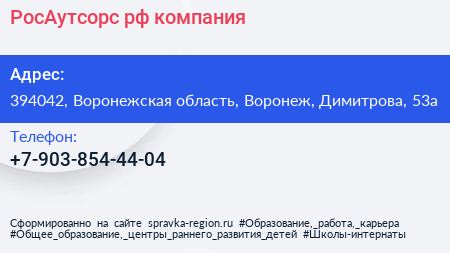 РосАутсорс.рф, компания по адресу 394042, Воронежская область, Воронеж, Димитрова, 53а в дальнейшем Организация, размещена в следующих категориях: