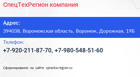 СпецТехРегион, компания по адресу 394038, Воронежская область, Воронеж, Дорожная, 19Б в дальнейшем Организация, размещена в следующих категориях: