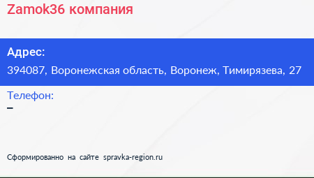 Zamok36, компания по адресу 394087, Воронежская область, Воронеж, Тимирязева, 27 в дальнейшем Организация, размещена в следующих категориях:
