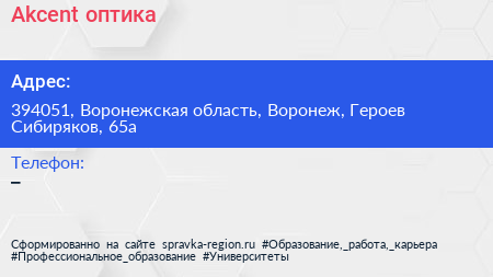 Akcent, оптика по адресу 394051, Воронежская область, Воронеж, Героев Сибиряков, 65а в дальнейшем Организация, размещена в следующих категориях: