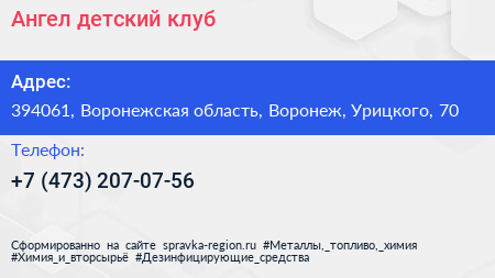 Ангел, детский клуб по адресу 394061, Воронежская область, Воронеж, Урицкого, 70 в дальнейшем Организация, размещена в следующих категориях: