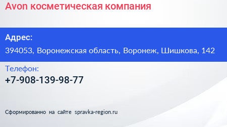 Avon, косметическая компания по адресу 394053, Воронежская область, Воронеж, Шишкова, 142 в дальнейшем Организация, размещена в следующих категориях: