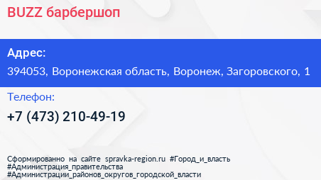 BUZZ, барбершоп по адресу 394053, Воронежская область, Воронеж, Загоровского, 1 в дальнейшем Организация, размещена в следующих категориях: