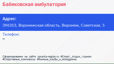 Бабяковская амбулатория по адресу 396313, Воронежская область, Воронеж, Советская, 5 в дальнейшем Организация, размещена в следующих категориях: