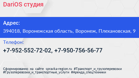 DariOS, студия по адресу 394018, Воронежская область, Воронеж, Плехановская, 9 в дальнейшем Организация, размещена в следующих категориях: