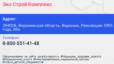 Эко Строй Комплекс по адресу 394018, Воронежская область, Воронеж, Революции 1905 года, 84а в дальнейшем Организация, размещена в следующих категориях: