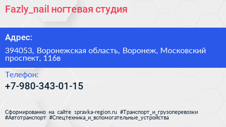 Fazly_nail, ногтевая студия по адресу 394053, Воронежская область, Воронеж, Московский проспект, 116в в дальнейшем Организация, размещена в следующих категориях: