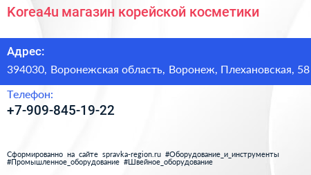 Korea4u, магазин корейской косметики по адресу 394030, Воронежская область, Воронеж, Плехановская, 58 в дальнейшем Организация, размещена в следующих категориях: