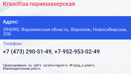 Krasottaa, парикмахерская по адресу 394090, Воронежская область, Воронеж, Новосибирская, 35Б в дальнейшем Организация, размещена в следующих категориях: