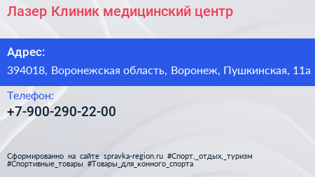 Лазер Клиник, медицинский центр по адресу 394018, Воронежская область, Воронеж, Пушкинская, 11а в дальнейшем Организация, размещена в следующих категориях: