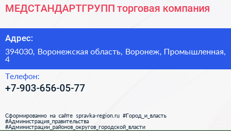 МЕДСТАНДАРТГРУПП, торговая компания по адресу 394030, Воронежская область, Воронеж, Промышленная, 4 в дальнейшем Организация, размещена в следующих категориях:
