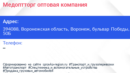 Медоптторг, оптовая компания по адресу 394088, Воронежская область, Воронеж, бульвар Победы, 50Б в дальнейшем Организация, размещена в следующих категориях: